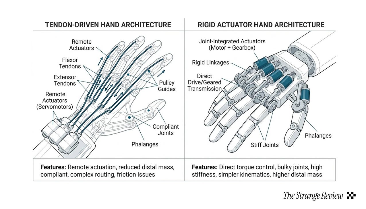 But vertical integration has limits. The actuation and sensing problems are deep enough that specialist suppliers may emerge, like companies focused purely on tendon-driven mechanisms, high-density tactile arrays, or compliant gripper architectures.