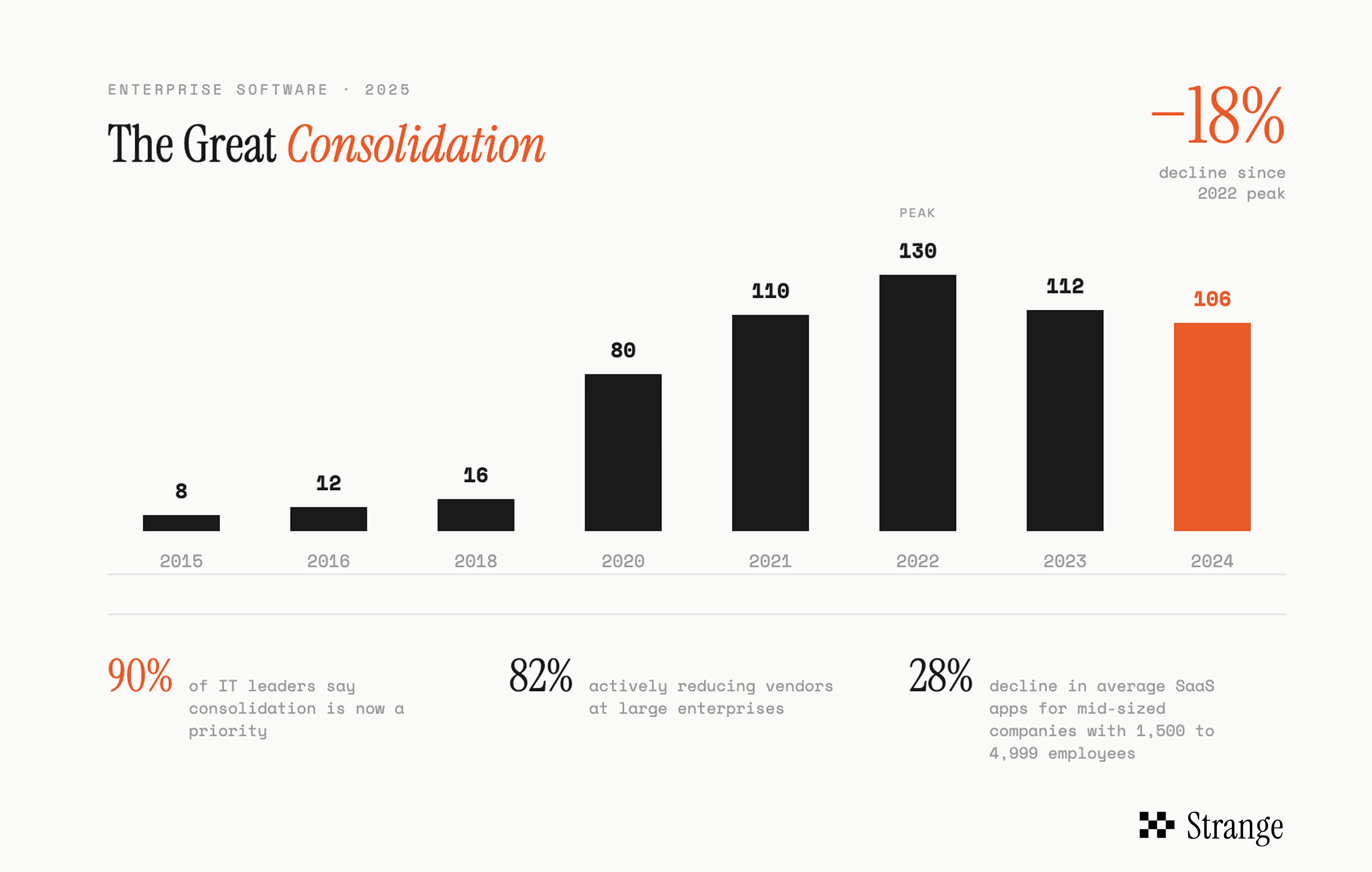I’ve cancelled more software subscriptions this past year than ever before. Same story in my group chats. This feels like a canary in a coal mine: according to this BetterCloud report, 90% of enterprises now say software consolidation is a priority.