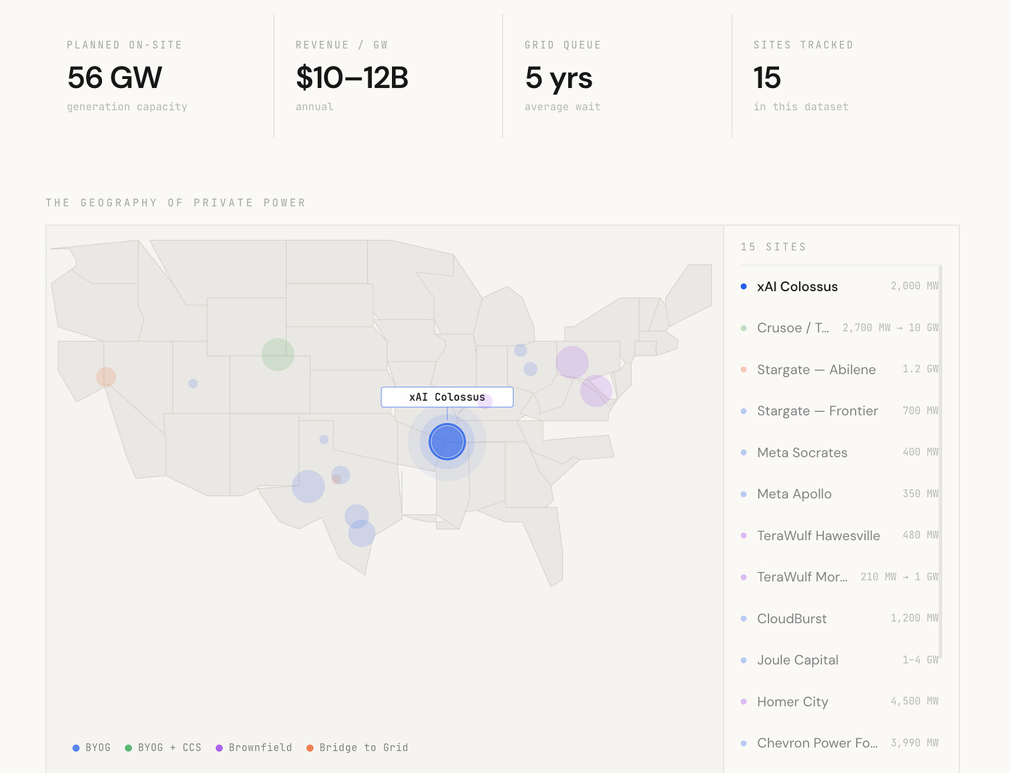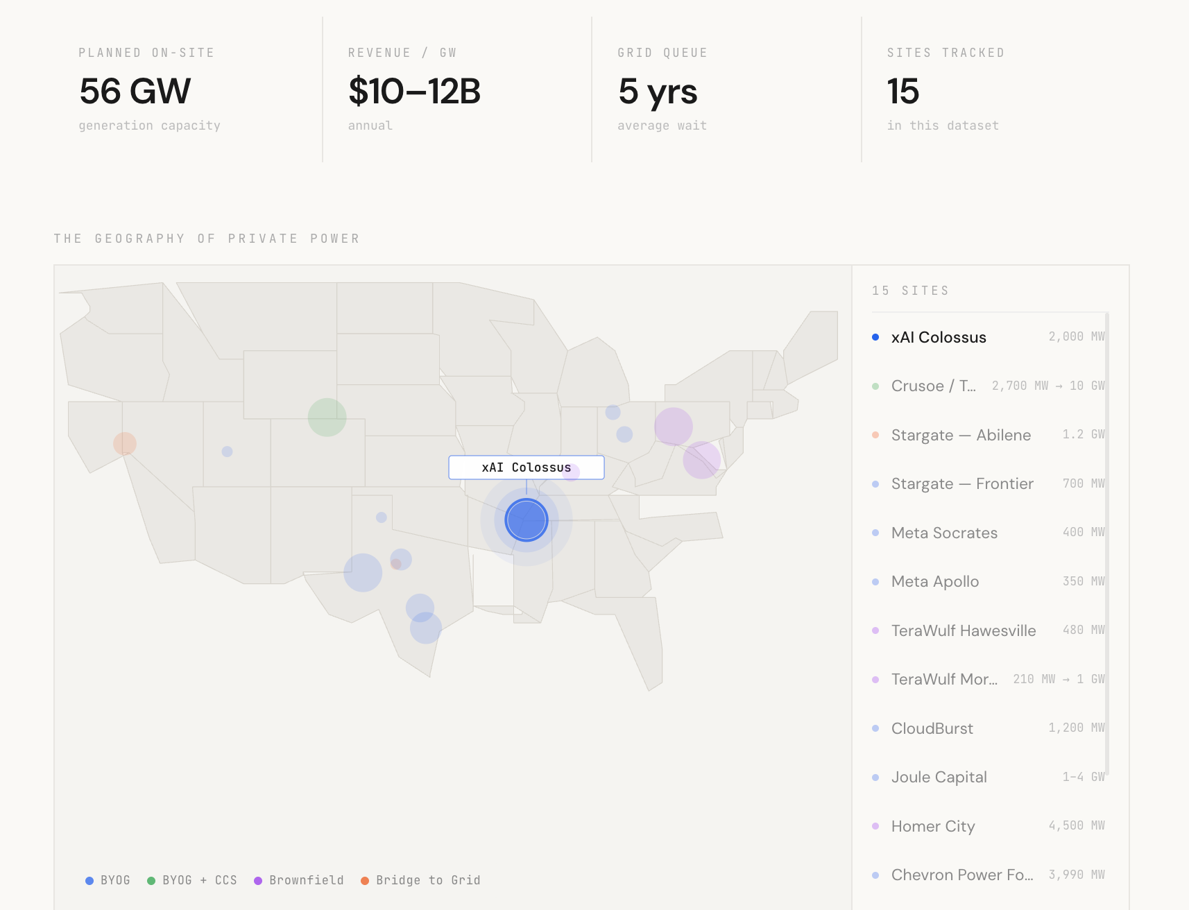 This sentiment captures the philosophical core of the private power movement: energy demand isn’t an externality to minimize. It’s a feature of progress.