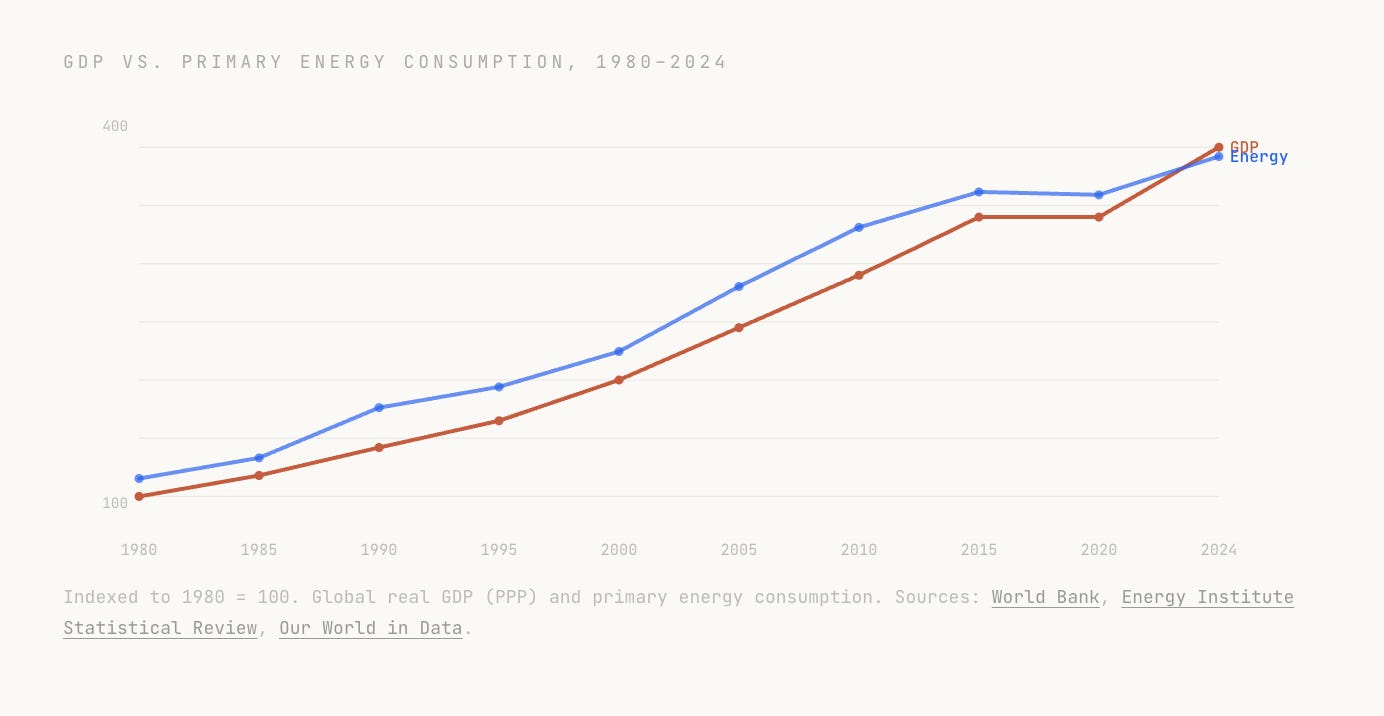 Josh T. Smith, who writes the energy policy newsletter Powering Spaceship Earth, frames the case for all of this simply: prosperity is energy-intensive.
